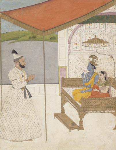 Attributed to Nainsukh - Raja Balwant Singh of Jasrota Worships Krishna and Radha. Wonder of the Age - Master painters of India at the Metropolitan Museum of Art
