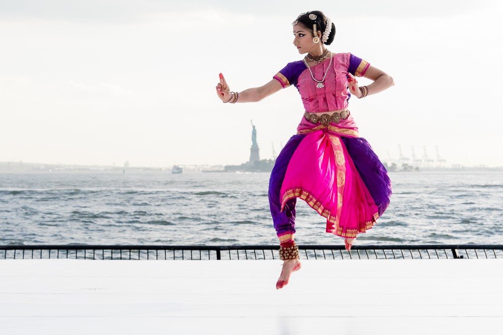 [dropcap]A[/dropcap]s the cold days of winter approach, we share with you the golden haze of sizzling summer when dancing feet, sky and water churned together to make it all sweet, endless, timeless. The event was the outdoor IAAC Erasing Borders Festival of Indian Dance which showcased topnotch talent from India and New York, turning the waterfront into a dance arena with hundreds of New Yorkers learning about the intricacies of Indian dance. Even Lady Liberty watched!