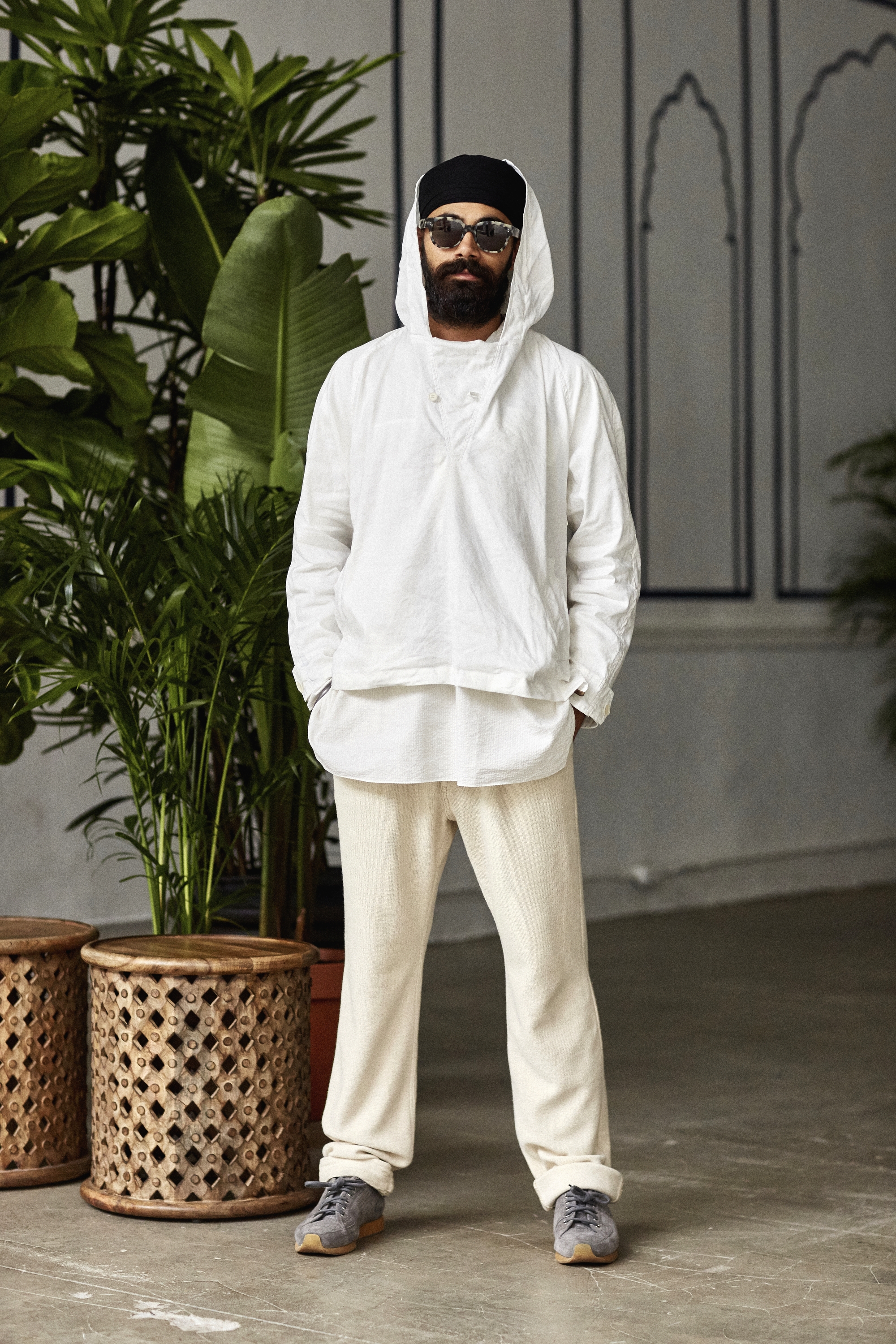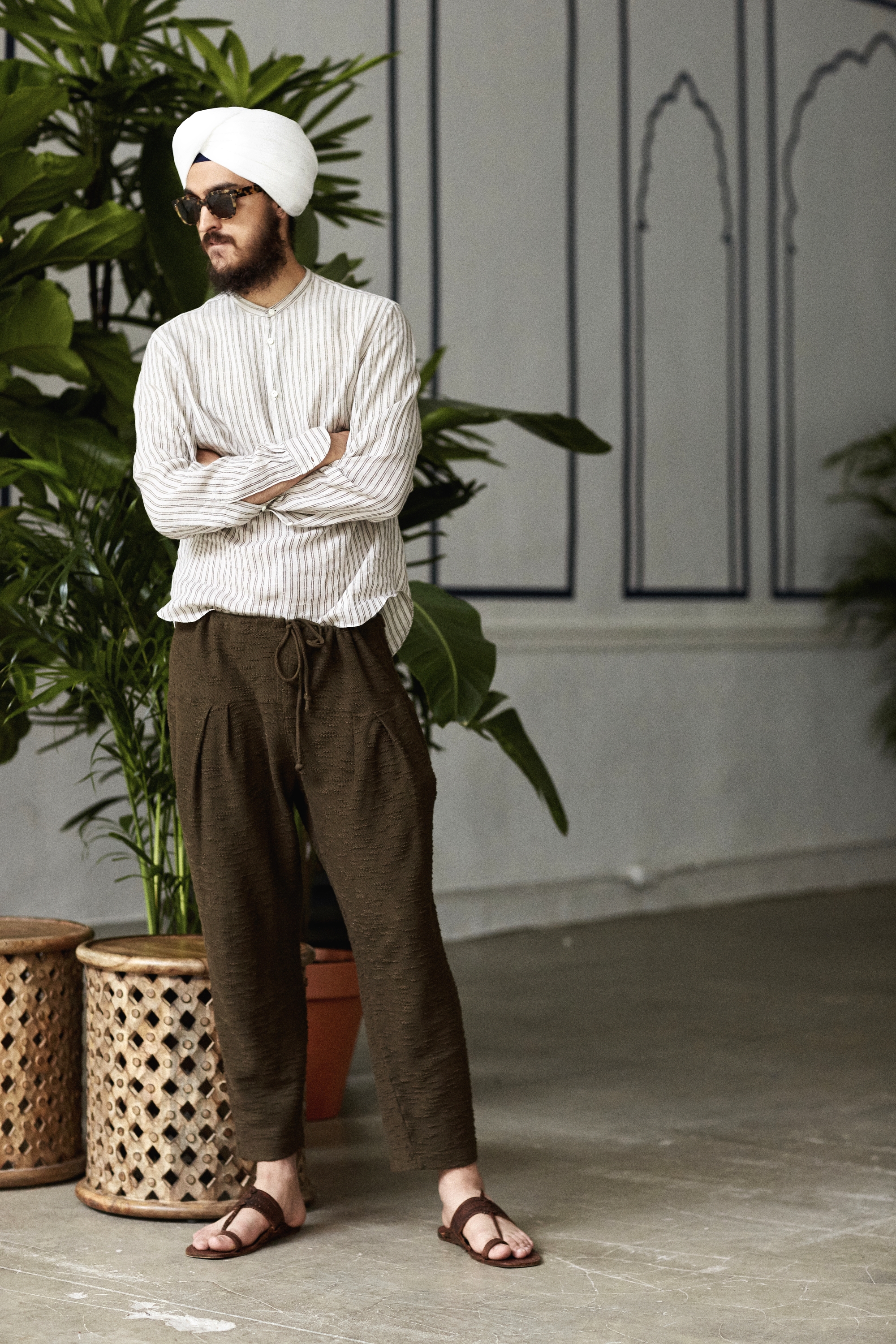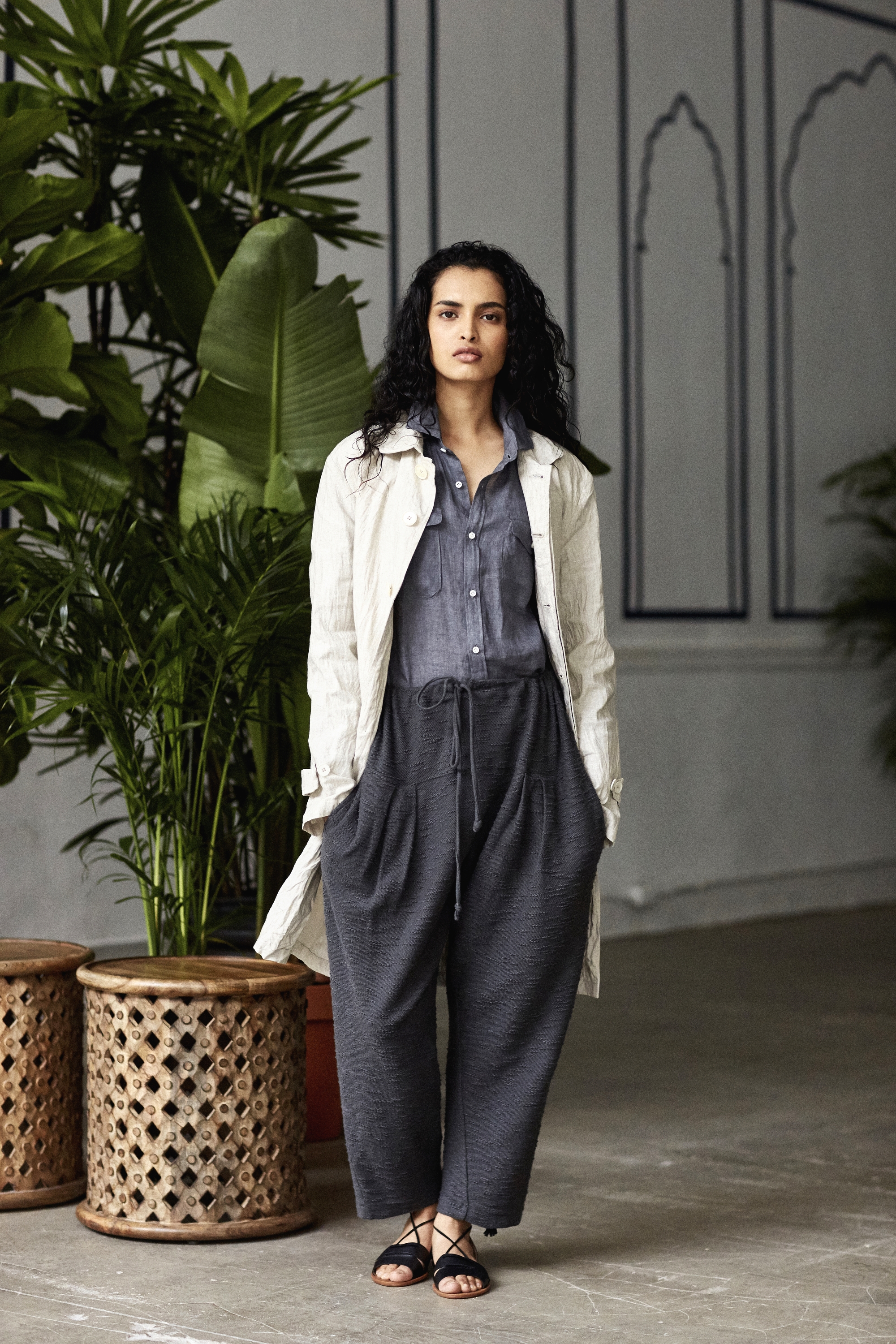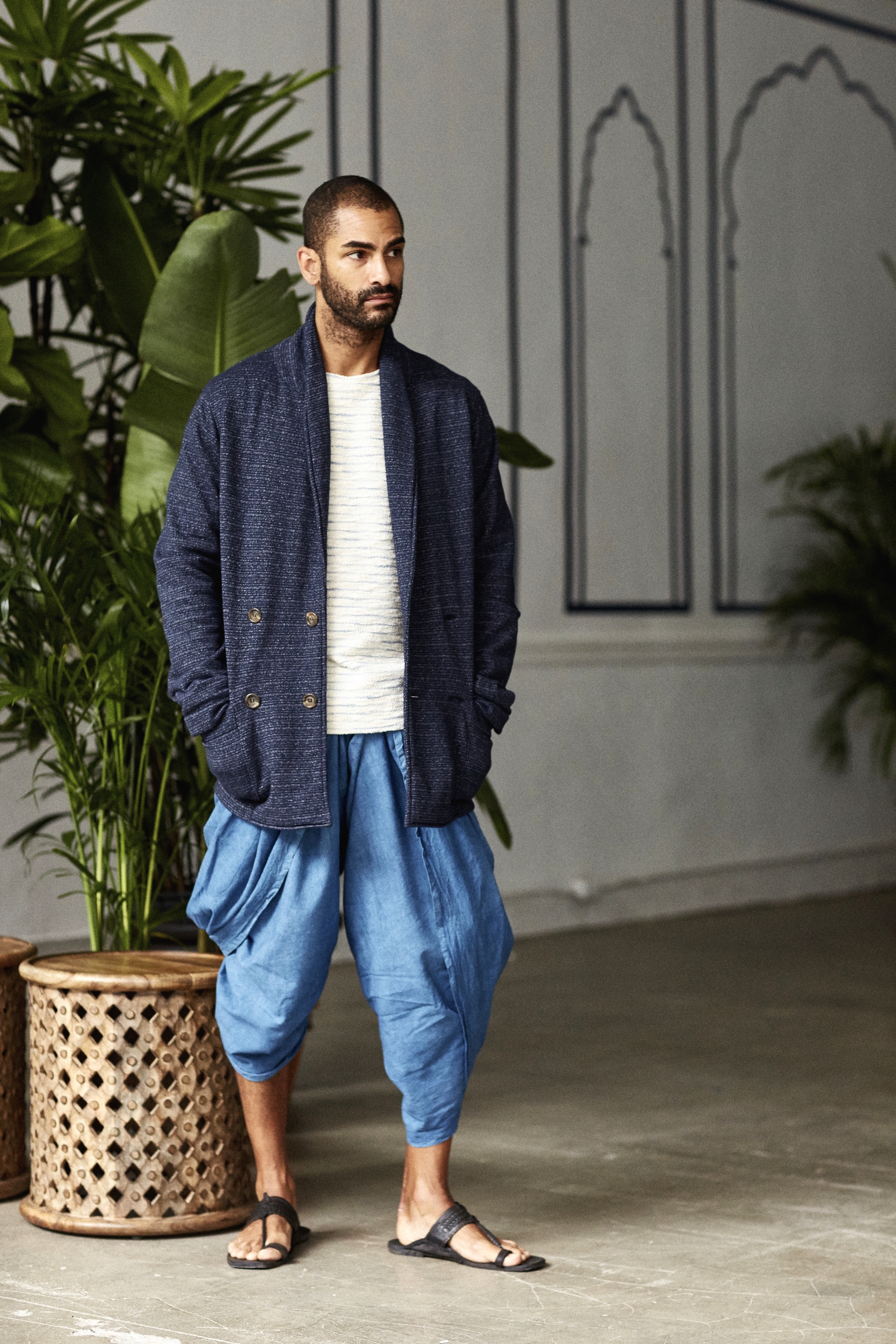 What about Indian silhouettes – could the pajamas and more radically, the dhoti catch on? “We weren’t planning to sell the dhoti but I did learn to tie one!” he says. ” I think the pajamas have sold very well – we make it a little less full in the leg and do a knit woven version of it.”