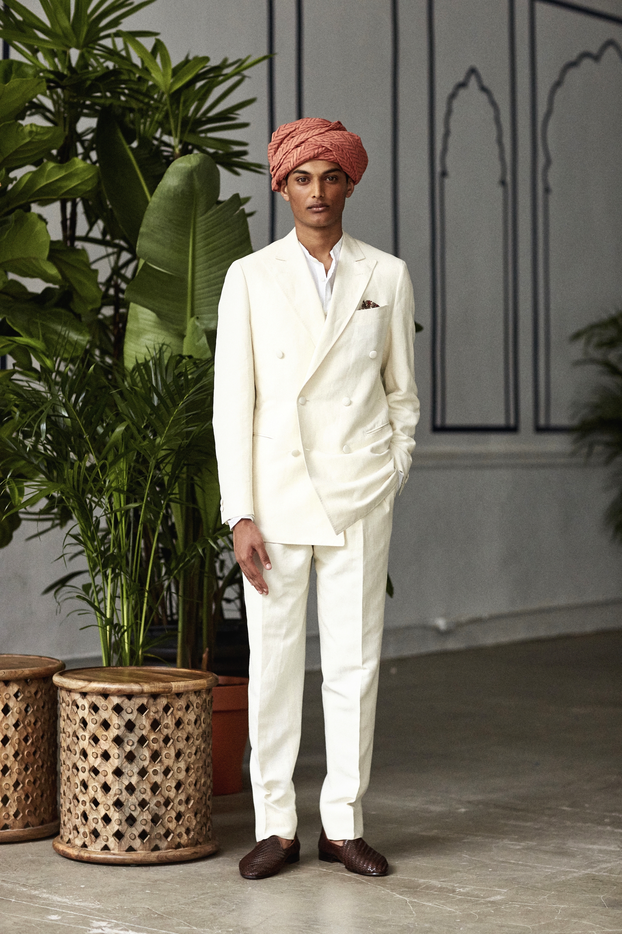 Women’s Wear Daily wrote: “The younger-skewed division of Italian luxury brand Isaia took a more fashion-forward approach to its spring collection, using India as a starting point. But instead of using the country’s predictable bright colors and silky fabrics, creative director Antonio Ciongoli took a more-intellectual approach with his neutral palette and raw textured fabrics.”
