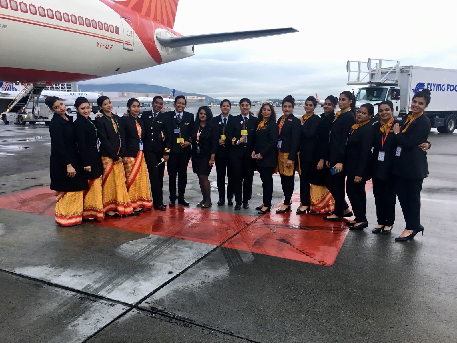 Two of the pilots who flew into the US were Captain Sunita Narula and Captain Kshamta Bajpai – two commanders who have also piloted the around the world non-stop flight from India to San Francisco.