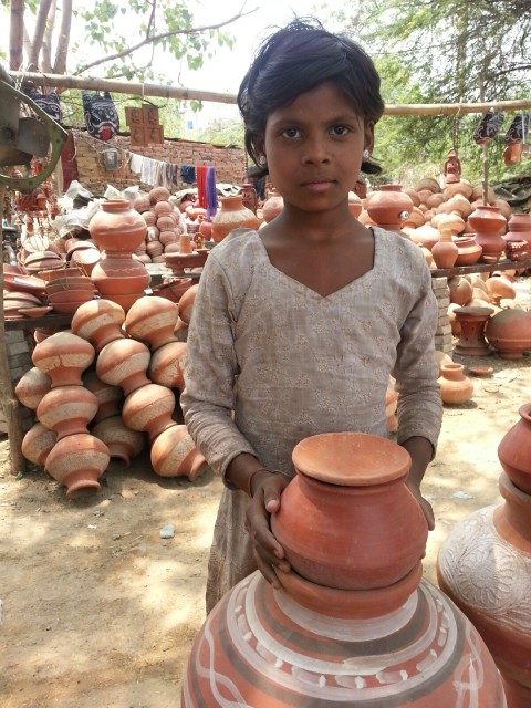 A little girl sells clay pots  (Photo: Lavina Melwani)