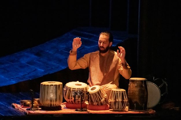 [dropcap]B[/dropcap]efore you even see any of the performers, you see the Afghan tabla player Salar Nader and hear the music of Jonathan Girling – and it is very effective. Nader is supposed to be an invisible presence, almost a stage set – and his percussion creates joy, sadness and always evokes hope. The drums are always in the background and always a part of the spirit of the evening