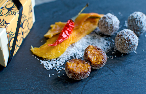 India-Inspired truffles – Mango, coconut & chillies by Santosh Tiptur