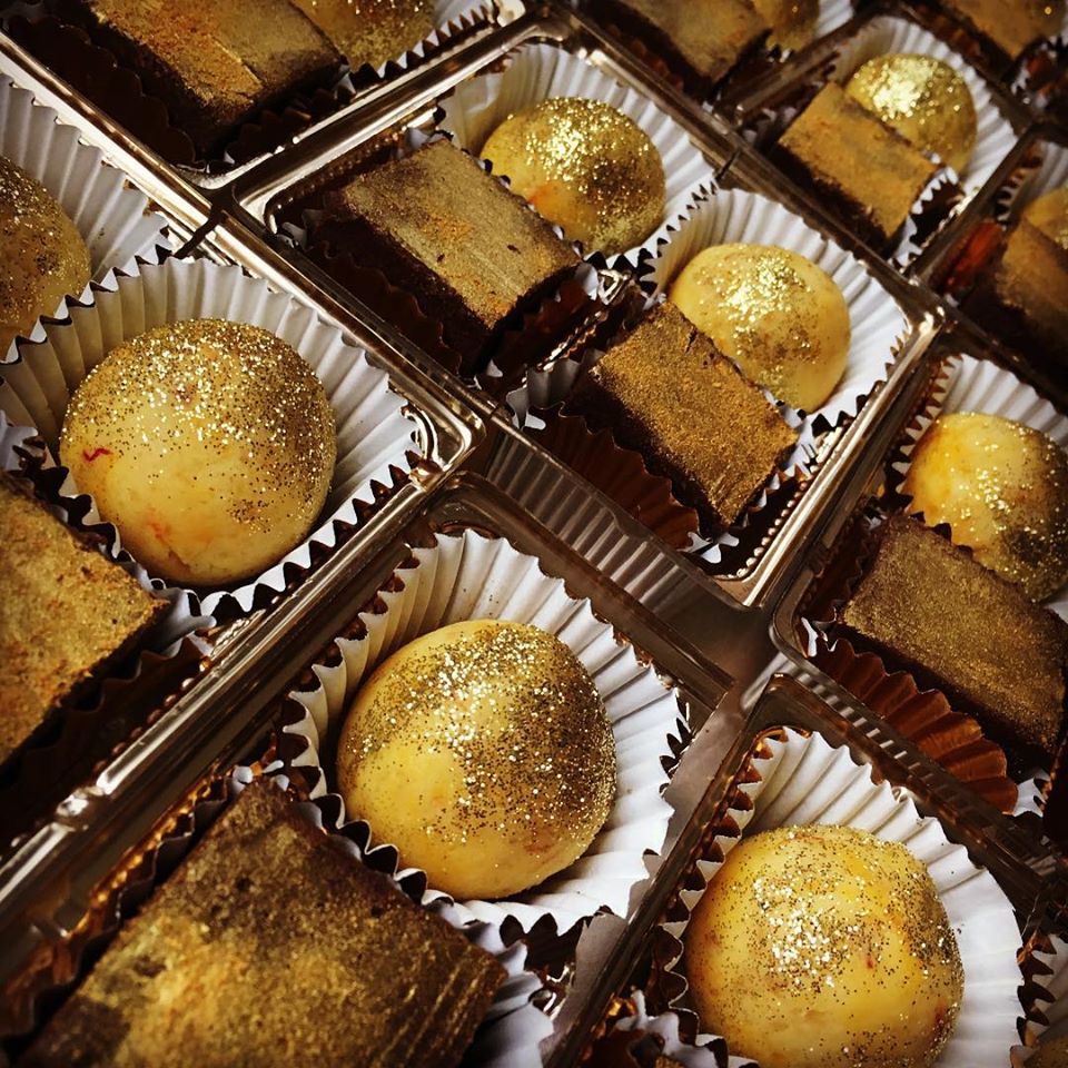 “All sweets are special as they are all made with either a memory I have or my need to recreate those early memories of sweets I have,” she says. “I try to bring those flavors that I connected with to life. One of the sweets is caramel barfi which I made for my love of peda, a sweet my aunt brought from Mathura for me. Caramelized milk has unique taste and texture, something that is often new for the western palate. I make mine adding some white chocolate into the mixture to add longevity and creamy texture to my sweet.”