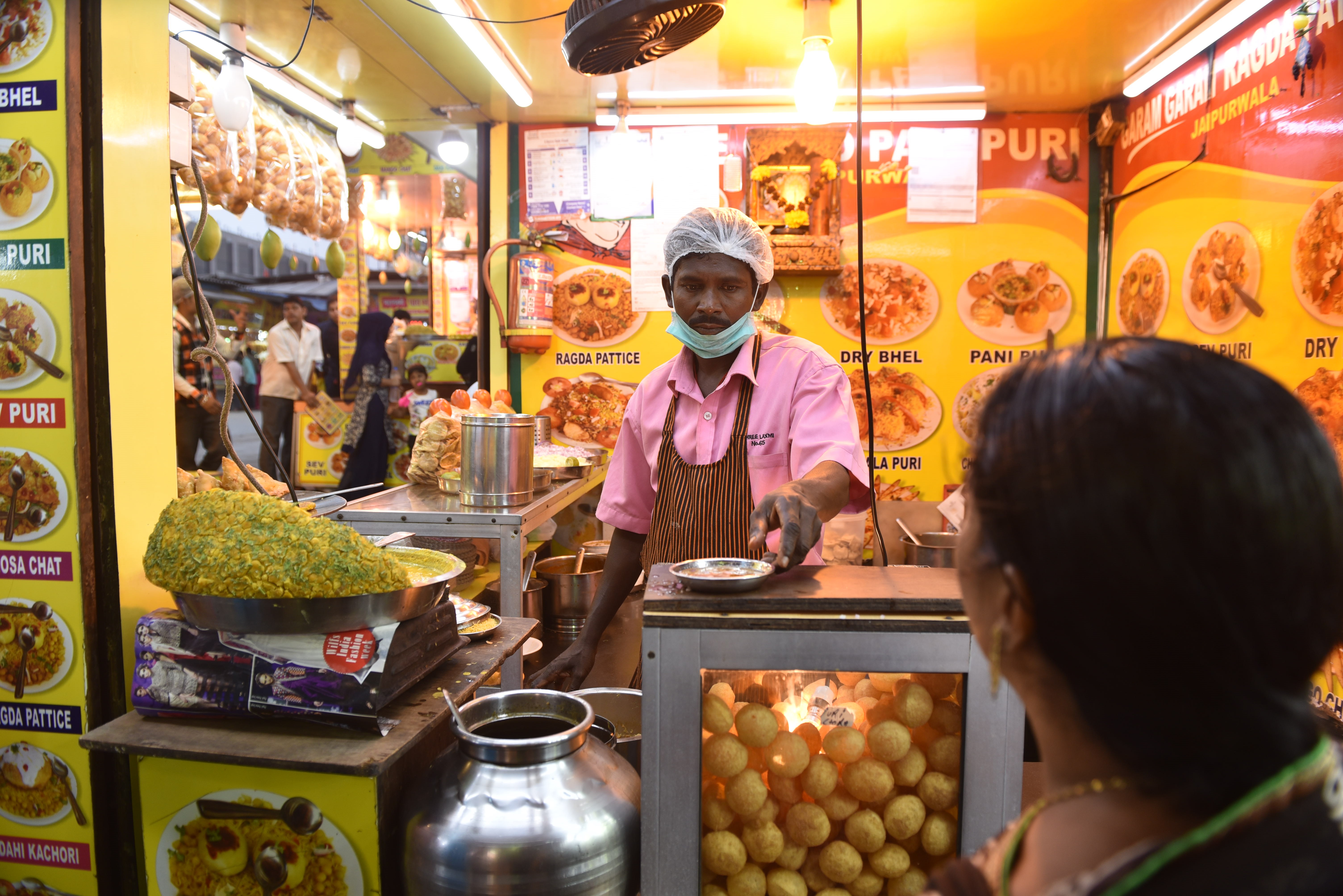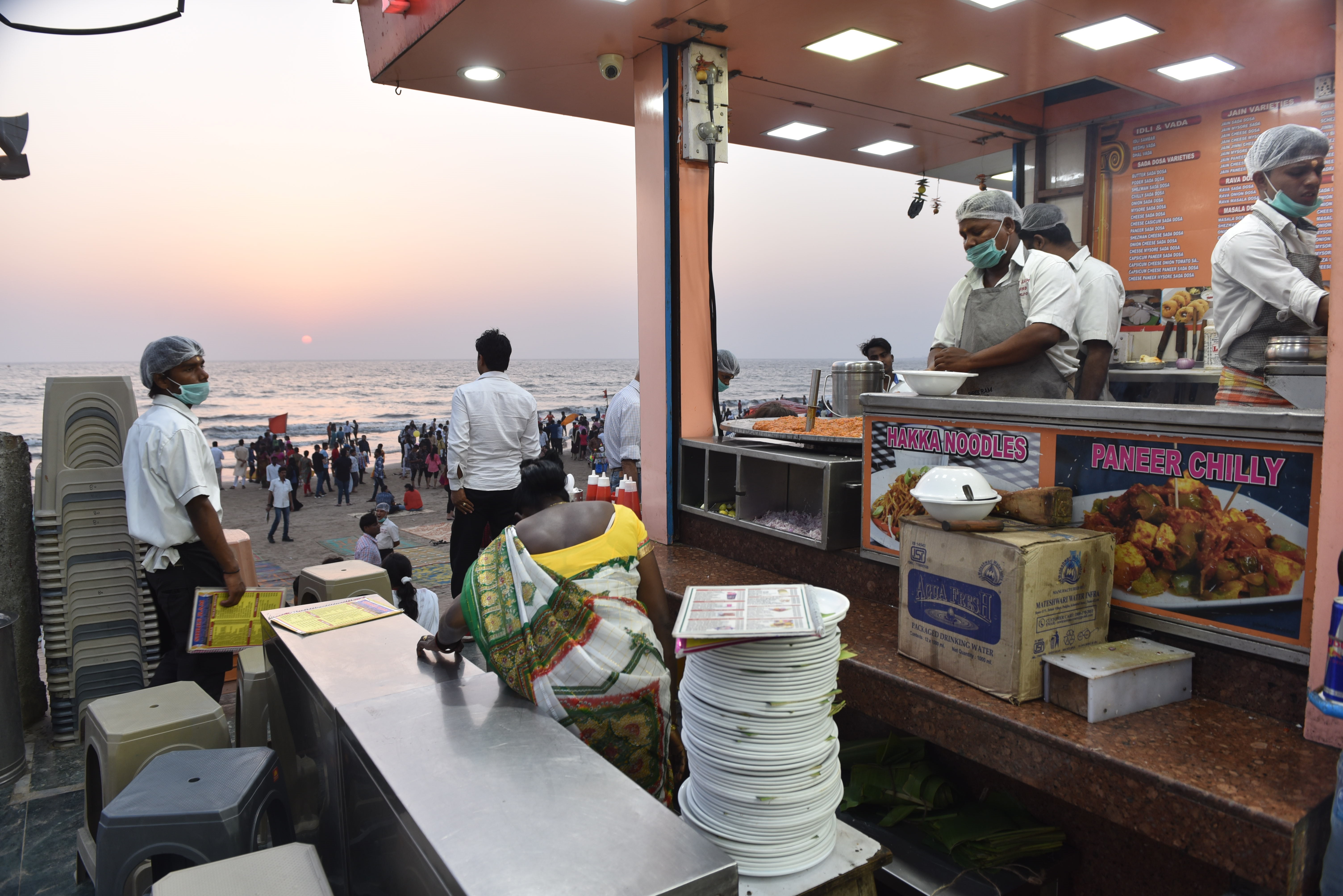 The majority of the vendors were now housed in a covered building on the beach – and here you had small stalls of every street food imaginable – sizzling tikis (potato turnovers), dosas, vadas and chaat of every variety. The vendors all had hair-coverings and gloves, and even masks. Certainly it was all more organized and sanitized but to some extent, the earlier scruffiness and randomness had its own charm. However, the bustling crowds seemed to love this modern setup and since the vendors were mostly the same, this new urbanization was definitely an improvement in their lives and business.