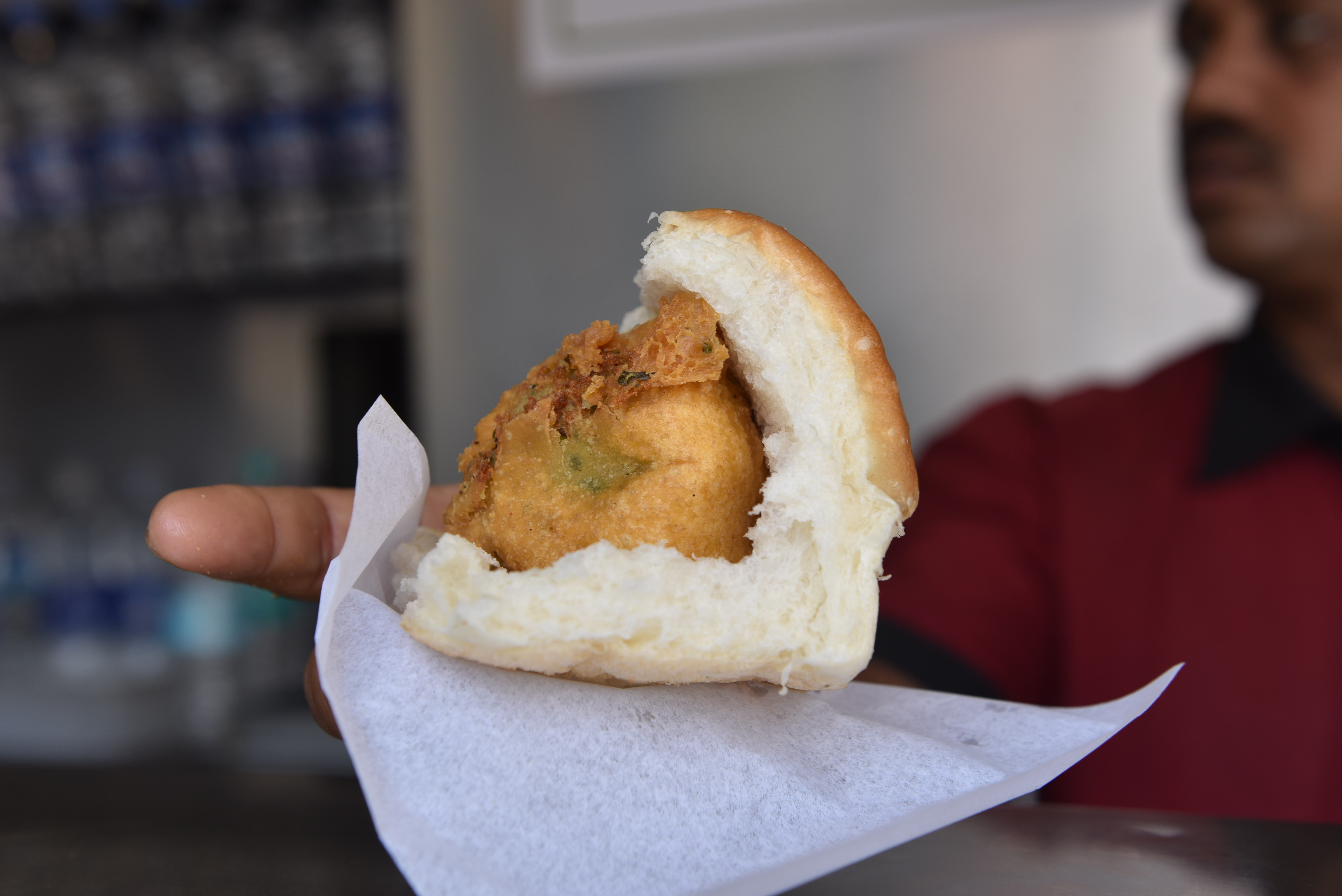 While there are scores of vada pav-wallas all over Mumbai, I went to Aram Vada Pav – a famous store which the owner had started as a street vendor but he became so popular with a mass following (before the days of social media!) that he started his own shop where even today crowds gather to get a taste of his treat.