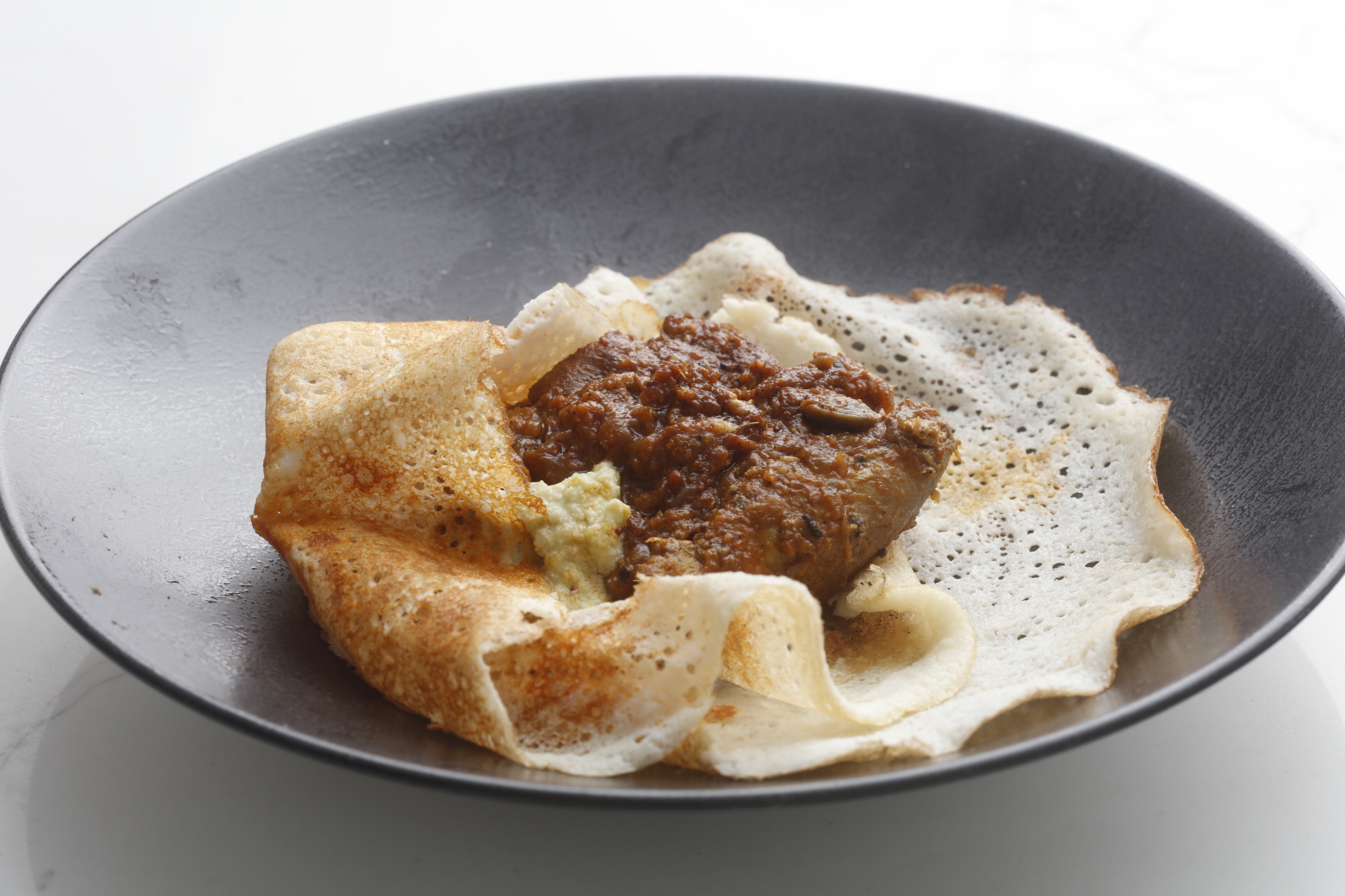 Desserts are Surbhi’s forte and the ones on the menu include such unusual flavors as Cashew Kulfi, Indian cashew ice cream served with tagmo chili chocolate crackle cookies, and Fig Firni – Rice custard, orange & garam masala poached figs. There’s also unniyappam – sourdough banana fritters with a guava-mango-curry leaf dipping sauce.