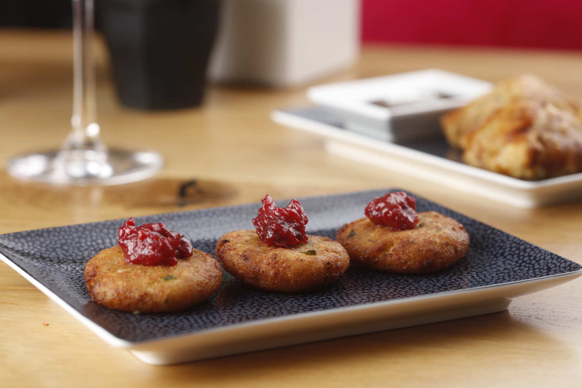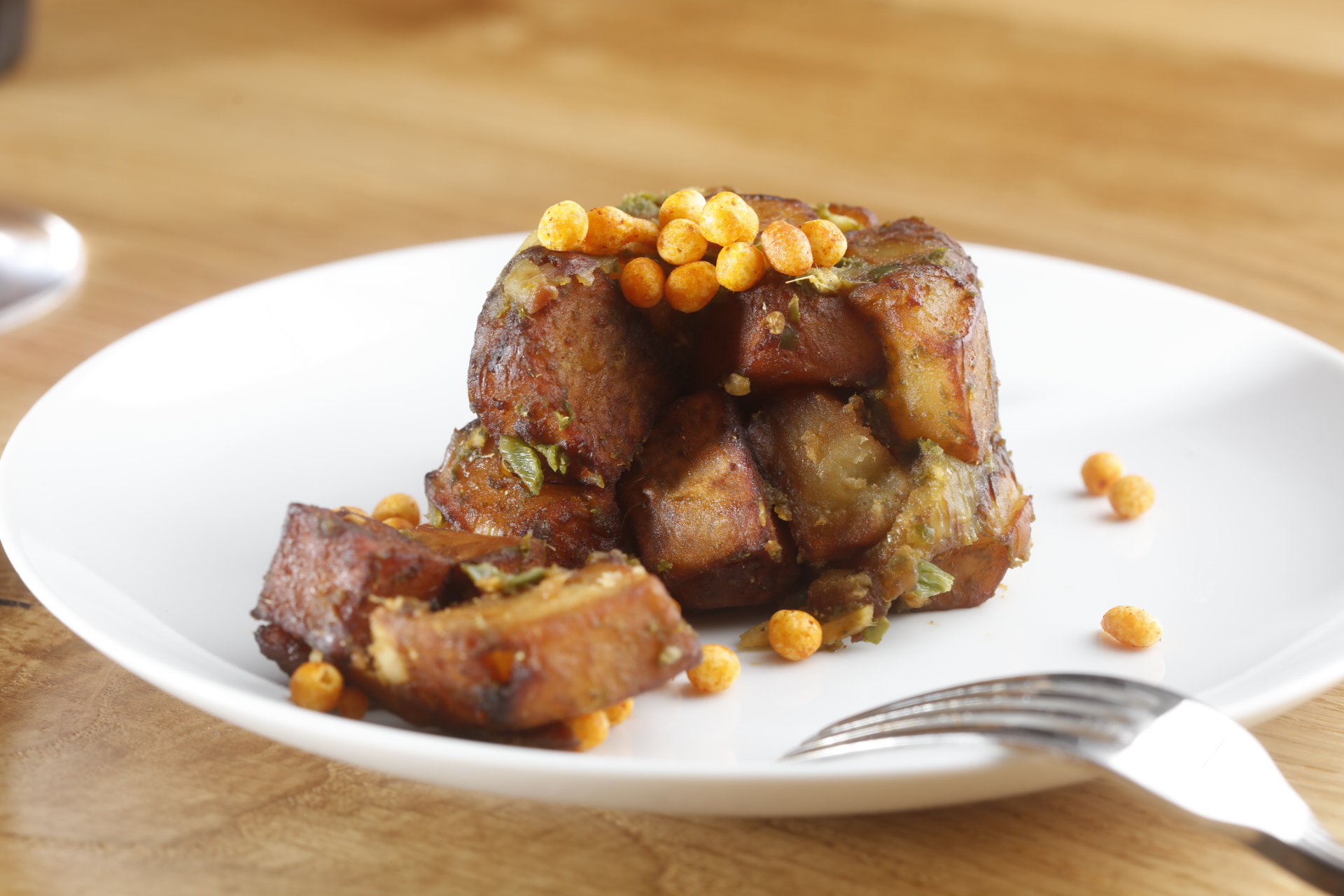 [dropcap]T[/dropcap]he food is definitely something to write home about, and you may not have tasted many of the dishes before. We had the cauliflower latkes accompanied by cranberry chutney – I would have liked them to have more heft but they were succulent with ginger flavoring and a comfortingly home-made taste. The Kerala Egg Puff was also something new on Indian tables in New York and of course spicy chaat is always a treat, especially with surprise ingredients added in, such as Shakarkandi Chaat which is Charcoal smoked Japanese sweet potato with cilantro chutney and roasted cumin.