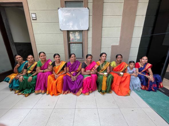 Republic Day – building cleaning ladies dressed up in gifted sarees for the celebration