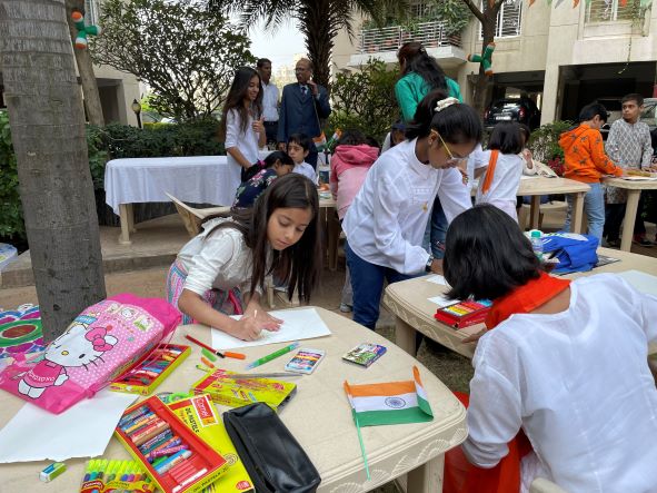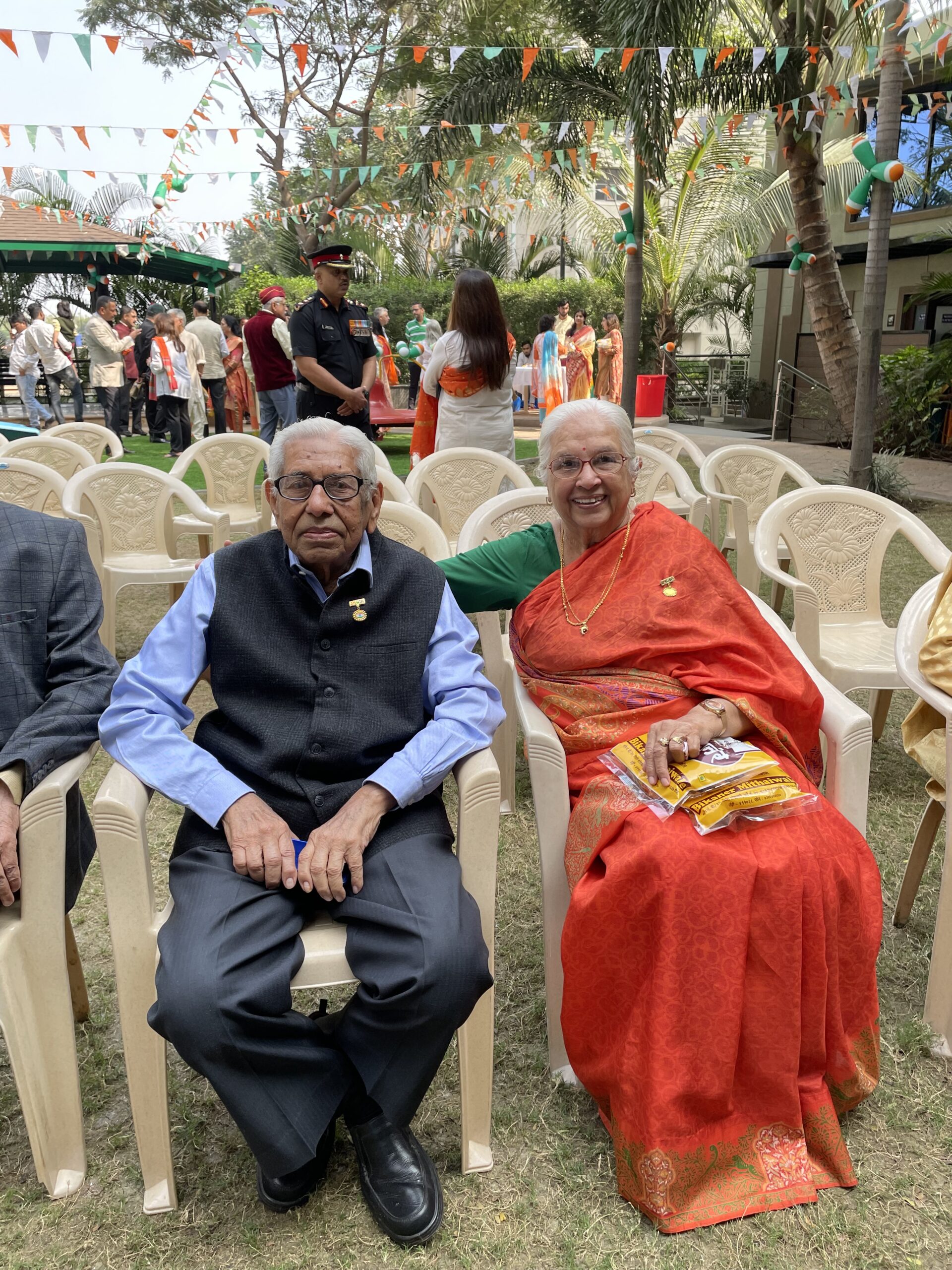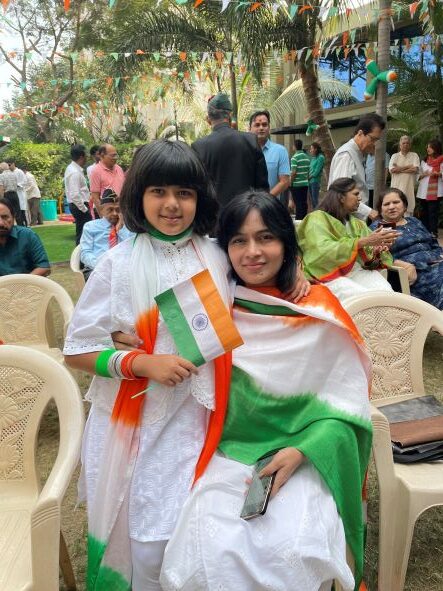 [dropcap]A[/dropcap]t the celebrations at the Wind Chime gated community in Poona, the flag was hoisted, the national anthem was sung and the kids had an art competition. Many mothers and daughters were dressed in the colors of the flag – and even a lovely pair of senior citizens.
