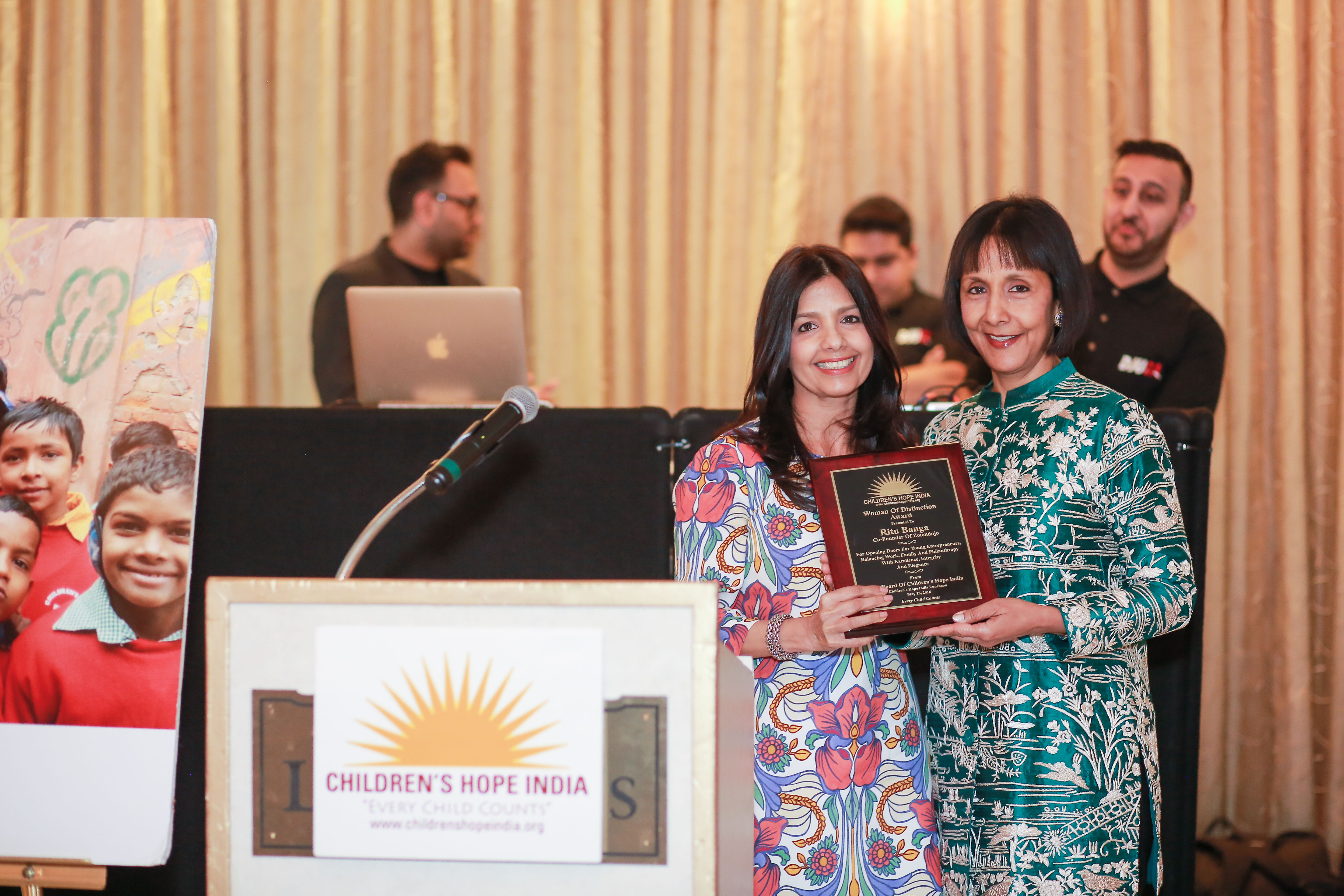 [dropcap]R[/dropcap]itu Banga was introduced by Tinku Jain, CHI’s first Woman of Distinction and an advisory board member. Banga in fact turned around and thanked Children’s Hope for giving her the opportunity to support its work, and she thanked CHI supporters for creating opportunities for under-served children in India and the US.  She said, “India and the US are both home to fantastic schools and colleges – and both are renowned for the brain power and ingenuity they possess. Yet there is a great disparity in the quality of education and opportunity for children between schools, across cities, across colleges. across states, in both countries. These disparities are an injustice and also a threat to our future – and Children’s Hope is doing remarkable work in addressing these issues and creating opportunities.”