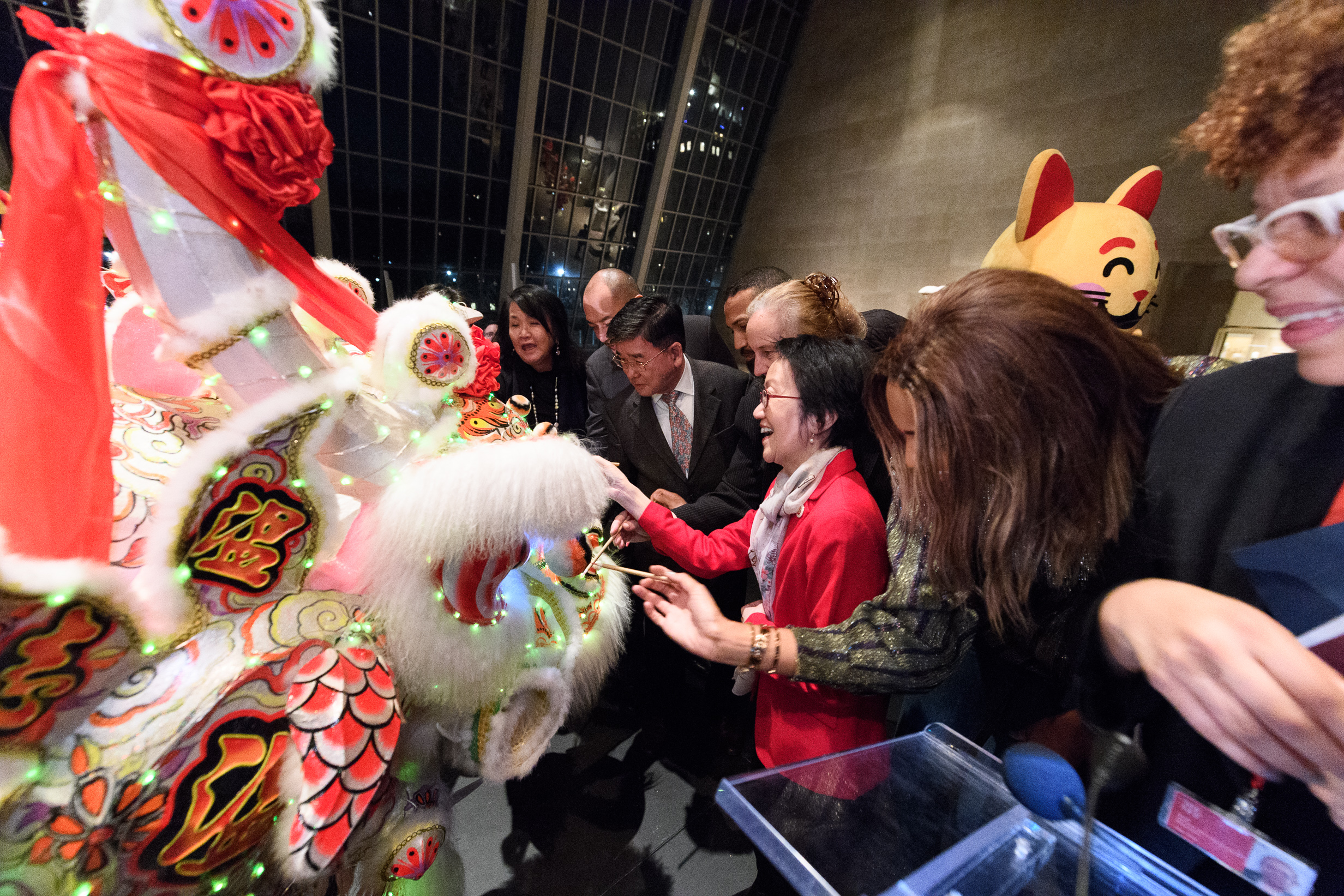 This traditional performance at the Met by the Wan Chi Ming Dragon Dance Team was a spectacular celebration for Lunar New Year. In this gathering for multicultural audiences, hundreds of New Yorkers dressed in their New Year best sipped wine and ate Chinese pork buns and spring rolls and mingled with people from around the world.