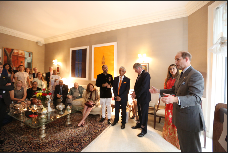 [dropcap]T[/dropcap]he Prince, who is the third son of Queen Elizabeth 11 and Prince Philip, Duke Of Edinburgh, is the tenth in line to the British throne. He was in the US promoting the Duke of Edinburgh Award Scheme. He played all 10 US tennis courts, promoting the original game of British tennis. He also runs the Wessex Youth Trust, which supports charities which provide opportunities specifically for children, and that was a common interest shared with Meera Gandhi, whose organization looks after the welfare of children in several countries.