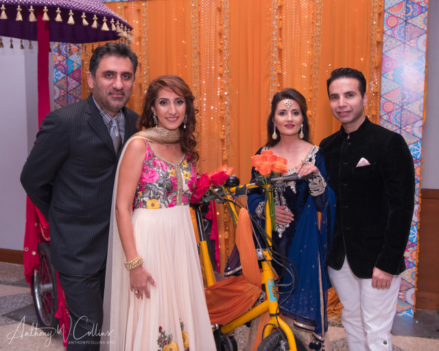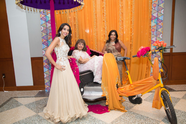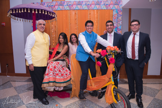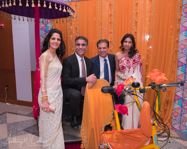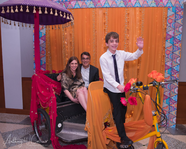 In reality this little rickshaw underwent a Cinderella-like transformation, going from a rough and tough plain New York pedicab and metamorphed into a colorful butterfly adorned with a glorious wedding umbrella, flowers and drapes, ready to engage with 500 guests for a photo opp! The next day the rickshaw didn’t quite turn into a pumpkin but having done its joyous performance act, changed back into an ordinary NYC pedicab which probably hauled tourists around Time Square all day!