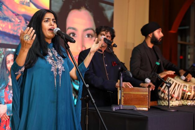 [dropcap]T[/dropcap]he evening began on a darkened stage with Grammy winner Falu Shah singing a soul-stirring ‘Mast Kalandar’ which is every audience’s favorite ballad. She was accompanied by Gaurav Shah, and the drumming magic was contributed by Nihal Singh.