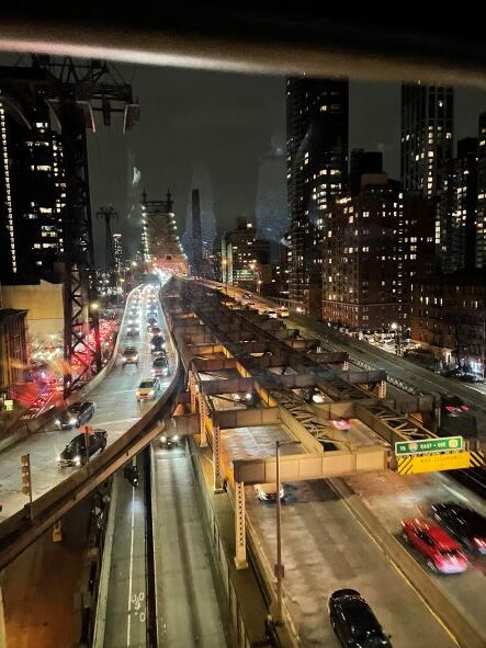 It’s a short ride but you get glimpses of city side streets and the beautiful East River as the cable car descends to the other side, and commuters with babies and bicycles and families click photos. At night the view is dramatic, like a foreign country. and the city goes from prosaic to glamorous.