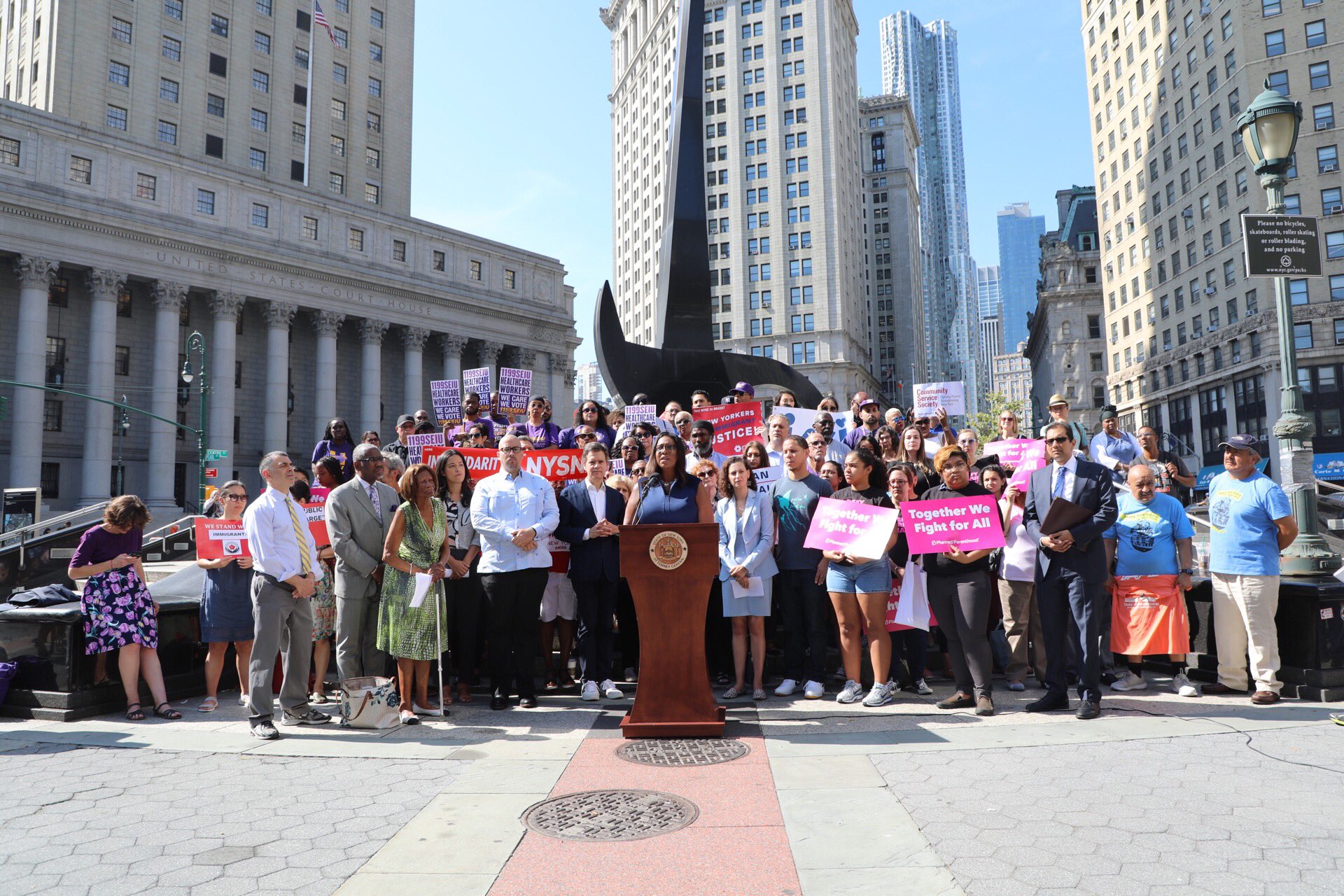 [dropcap]N[/dropcap]ew York Attorney General Letitia James (D) jointly filed the suit in Manhattan federal court with Connecticut and Vermont’s state attorneys general. Thirteen other state attorneys have already filed suit. As James pointed out these assistance programmes are created to help new arrivals who have limited means to achieve upward mobility. James said in a statement “The Trump Administration’s thinly veiled efforts to only allow those who meet their narrow ethnic, racial and economic criteria to gain a path to citizenship is a clear violation of our laws and our values.”