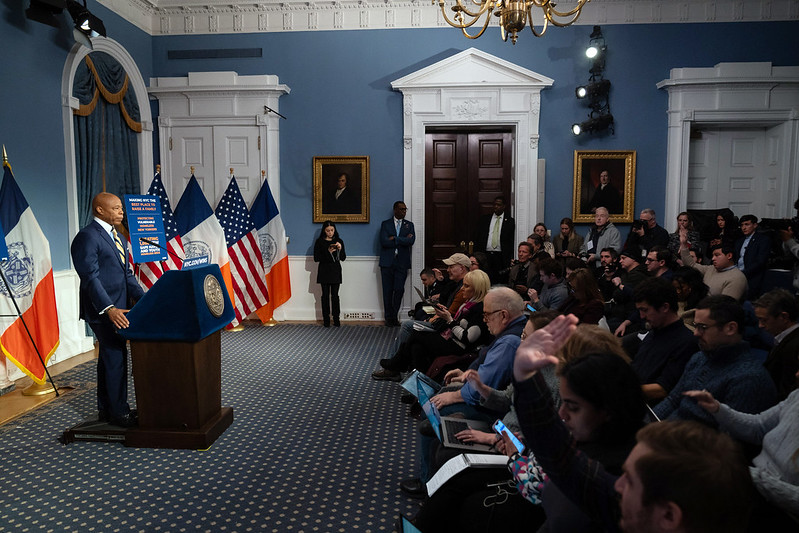 Mayor Eric Adams holds an in-person media availability. City Hall. Tuesday, January 21, 2025. Credit: Ed Reed/Mayoral Photography Office.