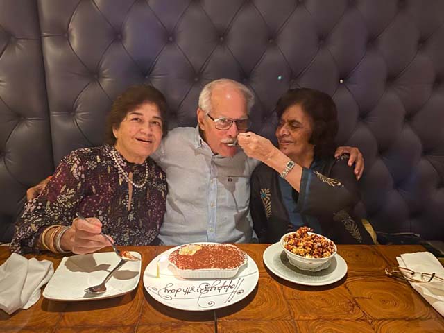 All their belongings have been shipped to India, and the Sakhranis are now in Miami, on the first leg of their return journey to Mumbai and their roots. I just received a WhatsApp message from them, now actually in Mumbai, India. There are photos of them enjoying a lunch at a restaurant with Lal’s only sibling Durga and they all look delighted to be back in the homeland.