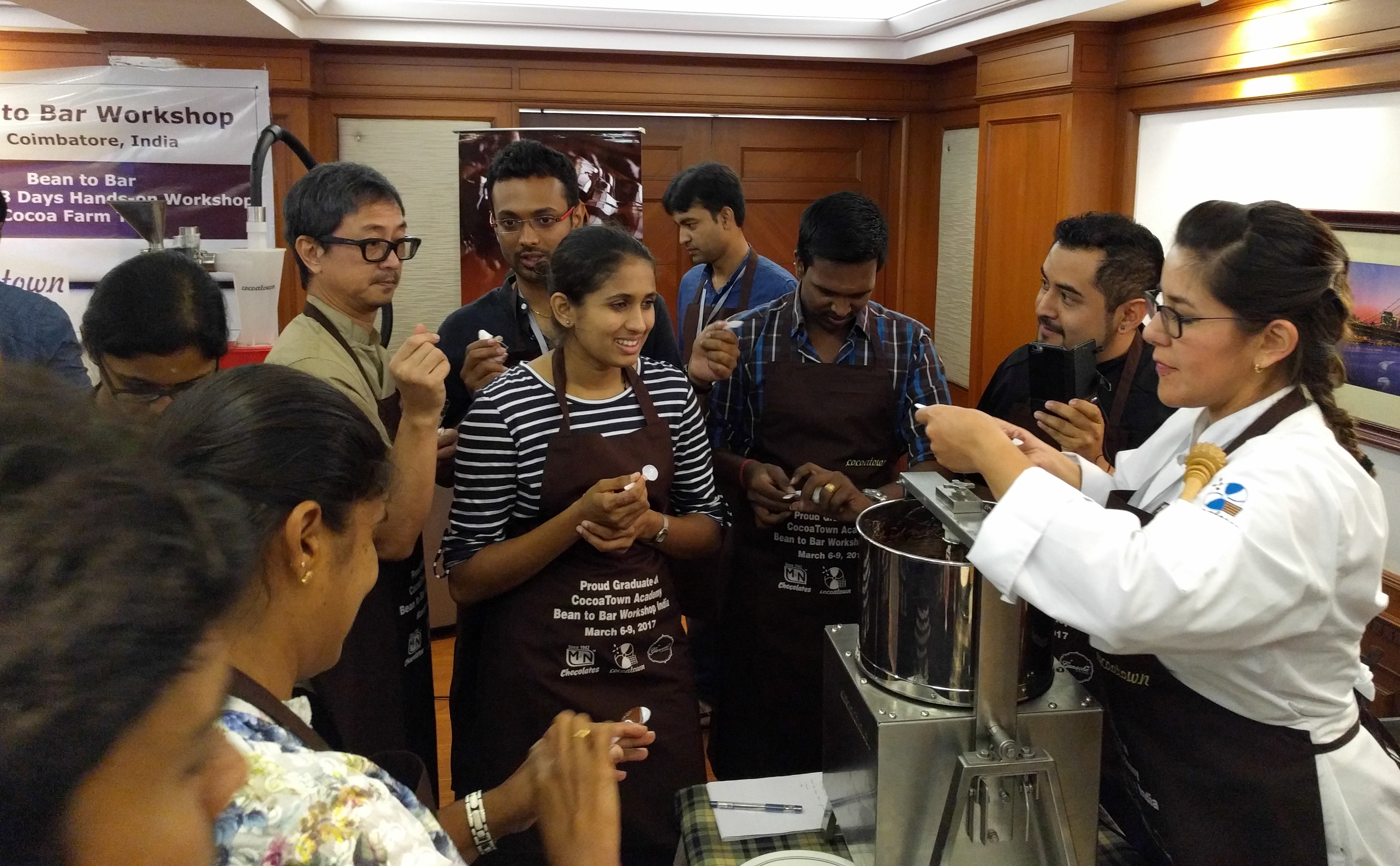 [dropcap]T[/dropcap]hey had to modify the idli grinders since the cocoa nibs have be ground for 2-3 days. According to Andal, “Our customers loved our equipment and we were catalysts for the growth of the “bean to bar” industry.” Over the years, they started making other machines targeting the small batch chocolate industry and have acquired a patent and are working on more. Today their company Cocoa Town is a big resource for small chocolatiers in many parts of the world, helping small-time entrepreneurs make a living. Sweet success!