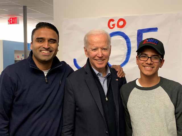 President Elect Joe Biden with Maju Varghese and his son Evan