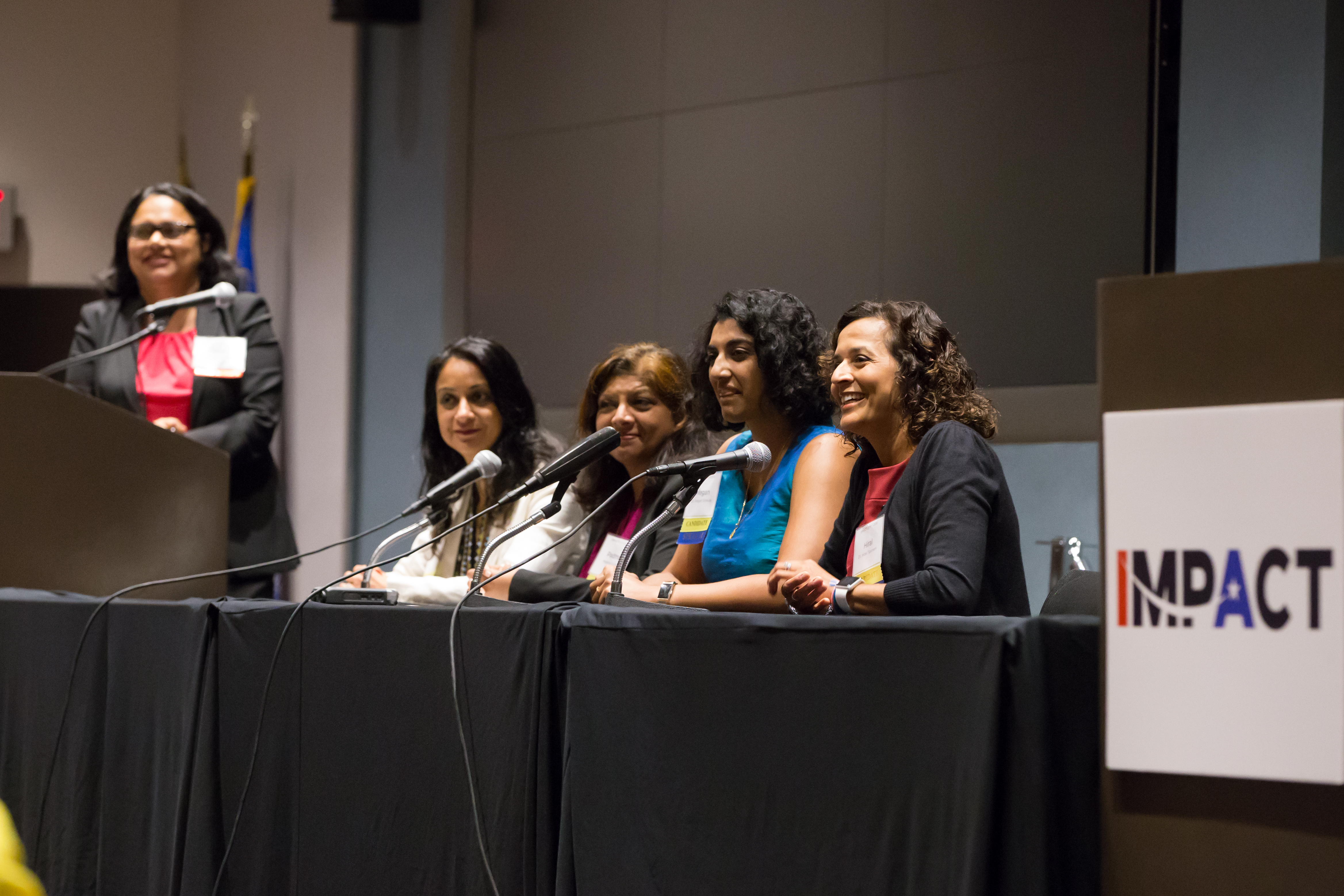 Women candidates speak at Impact Summit, June 7, 2018 in Washington, D.C. L-R: Mini Timmaraju, Board Member, Indian American Impact Project; Dita Bhargava, former candidate for Connecticut State Treasurer; Padma Kuppa, candidate for Michigan State House; Dr. Megan Srinivas, candidate for Iowa State House; and Dr. Hiral Tipirneni, candidate for U.S. House (AZ-08).
