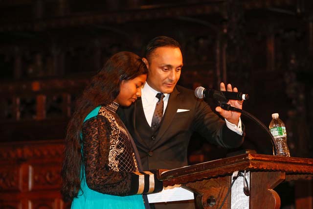 The evening proved that you can have fun while fund-raising. The emcee for the evening was standup comic Anish Shah and there was a musical performance by Surya Garg, a 16-year-old New York singer and songwriter who is releasing her first album this summer. The elaborate cocktails and menu for dinner was designed by celebrity chef Hemant Mathur who is now the chef of six restaurants in New York City. A live auction had some great luxury gifts including an Italian getaway to the Bulgari vineyards. And yes, another auction item was quite irresistible – a cameo role in a film that Rahul Bose is directing in 2016. The prize not only includes acting with him in the movie but also a dinner night with him! Needless to say, these were snapped up.