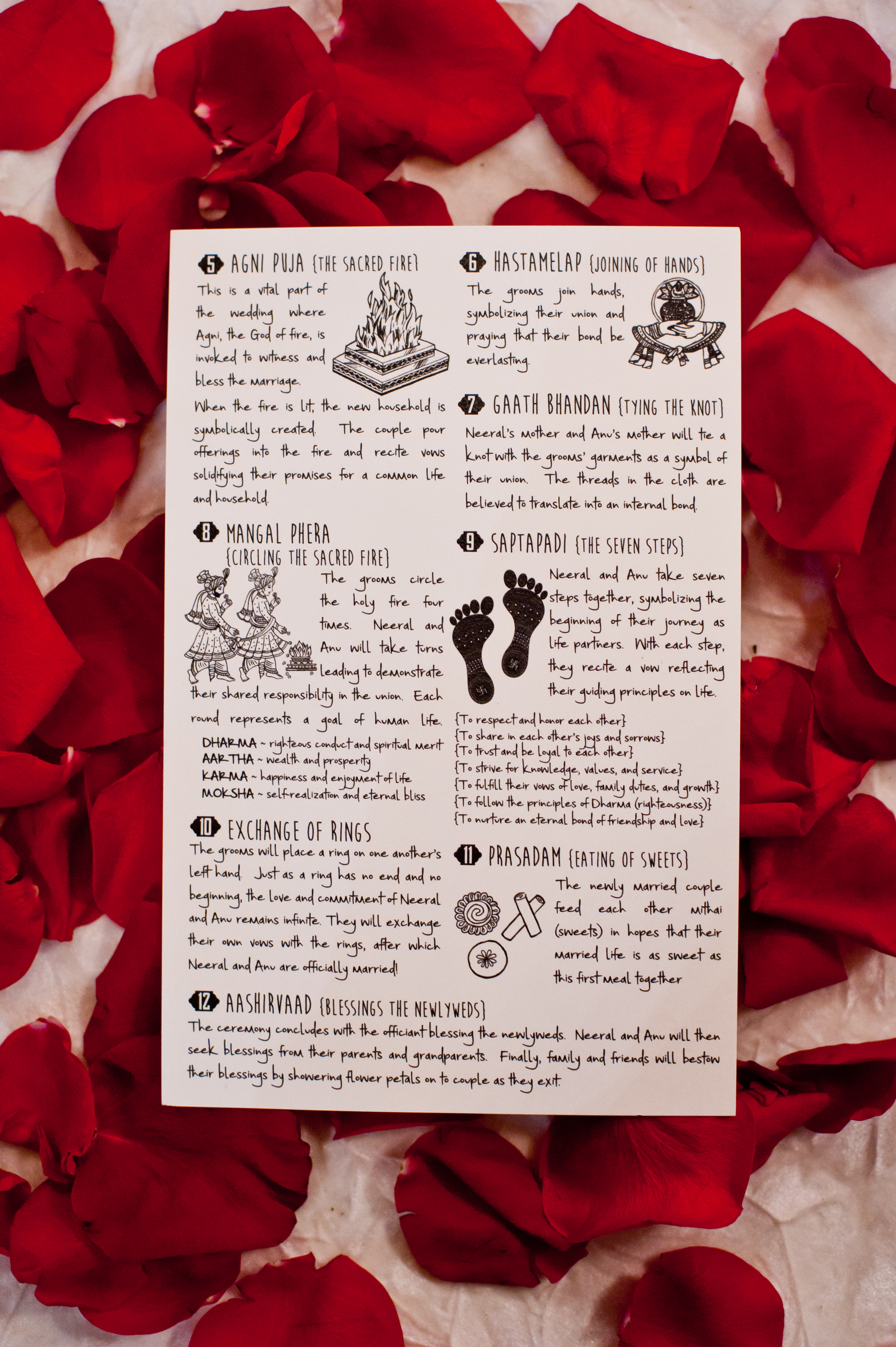 Hersh Khetarpal, our officiate, explained the traditional Vedic vows in English for all of our guests, and explained how her own journey led to performing same-sex Hindu wedding ceremonies. The ceremony was a mix of prayer and laughter and there were a lot of moments that we will remember forever. After the ceremony was over, it felt so cool to walk down the aisle as a married couple and be showered by rose petals.