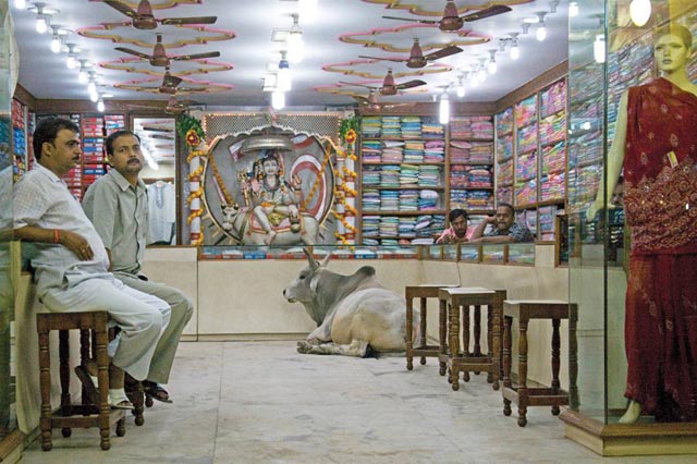 A child runs through a vast field of drying red chili peppers, conveying the unsung visual beauty that lurks in every corner of the country; a cow sitting placidly inside a garment store in Varanasi, as nonchalantly as a shopper, surrounded by fabrics. This live and let live policy often found amongst humans and animals is one of the endearing qualities of India.
